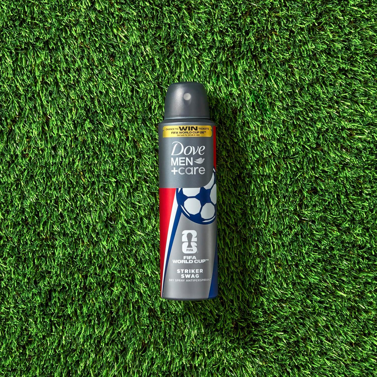 Dove Men+Care Striker Swag Dry Spray Antiperspirant combines Dove Men’s superior care and protection with a Limited Edition design and fragrance inspired by World Cup 26. With 72-hour protection, this antiperspirant neutralizes sweat and odor-causing bacteria, ensuring you stay fresh and confident throughout your day. The warm and indulgent scent provides a revitalizing experience, making it an essential part of your daily routine. Our formula is dermatologist-tested and includes added moisturizer, addressing the unique needs of men's skin by providing superior care. The spray is certified cruelty-free by PETA, reflecting our commitment to ethical practices and no animal testing. To use, simply shake the can well before each application, hold it 6 inches from your underarm, and spray to feel the difference. For optimal results, incorporate this product into your daily regimen alongside other Dove Men+Care offerings, ensuring comprehensive skin health and confidence. This World Cup, upgrade to pre-game care that truly goes the distance.